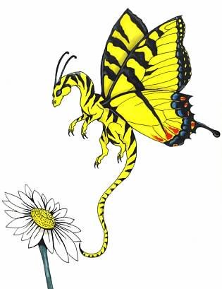 I did the original design for the tiger swallowtail dragon flutter all the way back in 2009. This was done in Copic marker and the first in my line of butterfly dragon creatures.